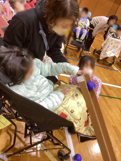 高等部1・2班の体育では、ネットの下でボールを転がす「ゴロバレー」をしています。どこをねらえば得点になるのかを考えてサーブしたり、パスからアタックの連携プレーで点を決めたりすることができました。